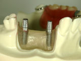 インプラントとは、歯が(根っこから)無くなった部分に人工の歯根としてチタンを顎の骨に埋め込んで歯を作る物です。術前に十分な検査が必要ですが、入れ歯とは比べ物にならない噛む力の回復があり、異物感もありません。