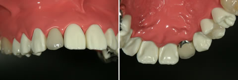 セラミックの歯ですが、内部と裏側は金属でできています。